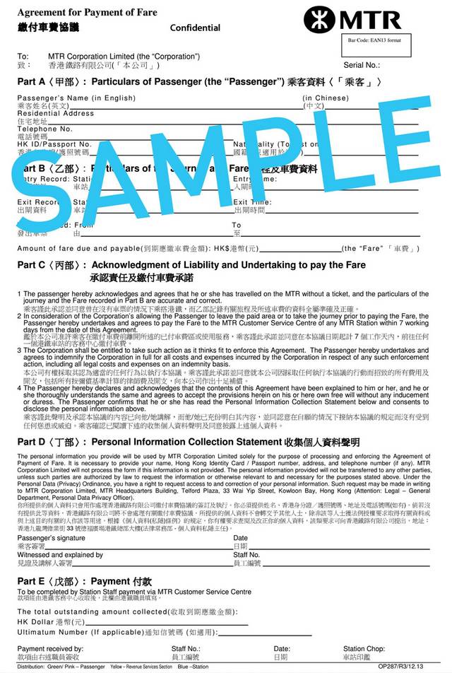 为什么要填这些信息呢?因为如果 7 天后没还钱的话,港铁可以用这些信息,去法庭告你逃票啊,而逃票在香港法律里还罚 5000 港币。