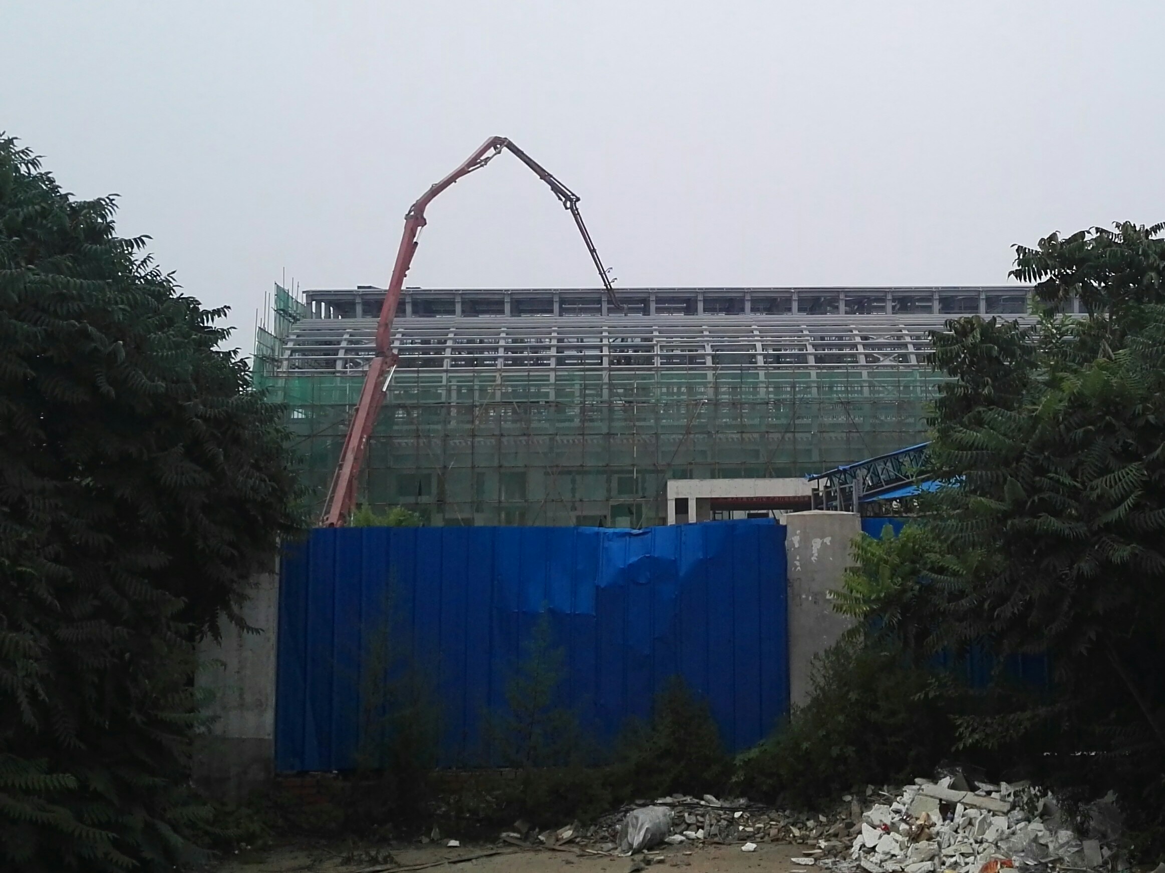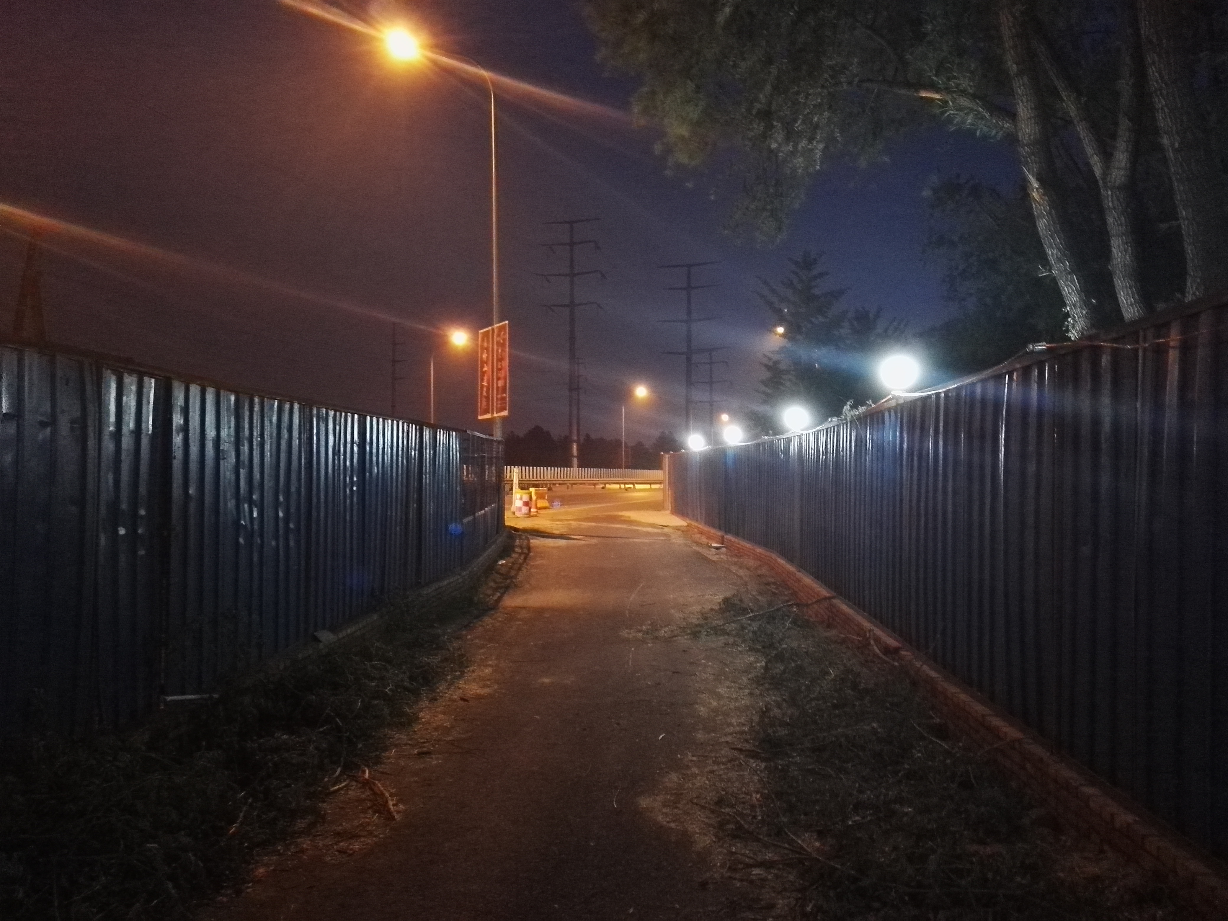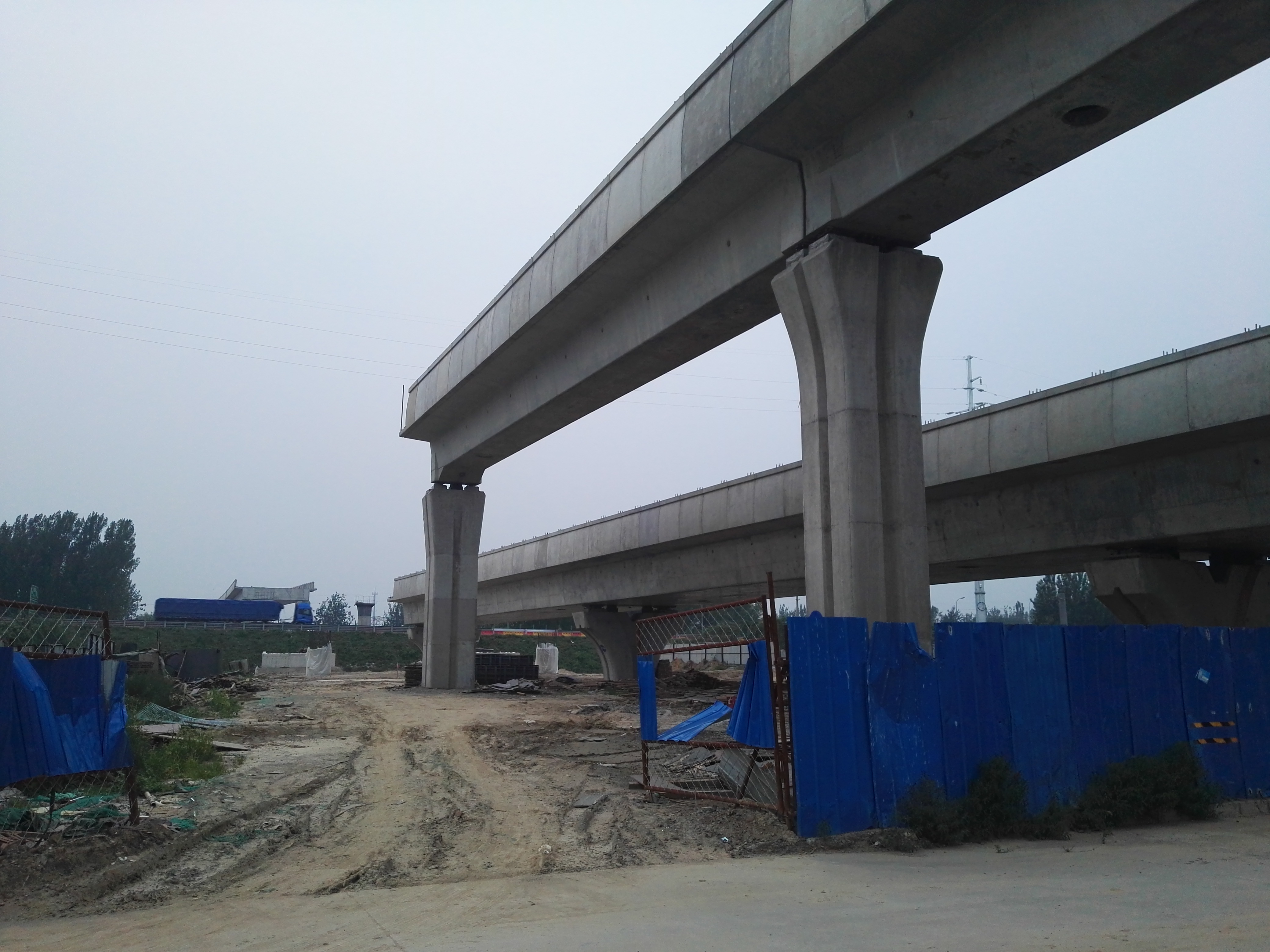 天慢慢变黑了,视线开始不大适合自行车了,我也想回学校洗个澡,于是准备回去。路过京周路的一个地铁工地。