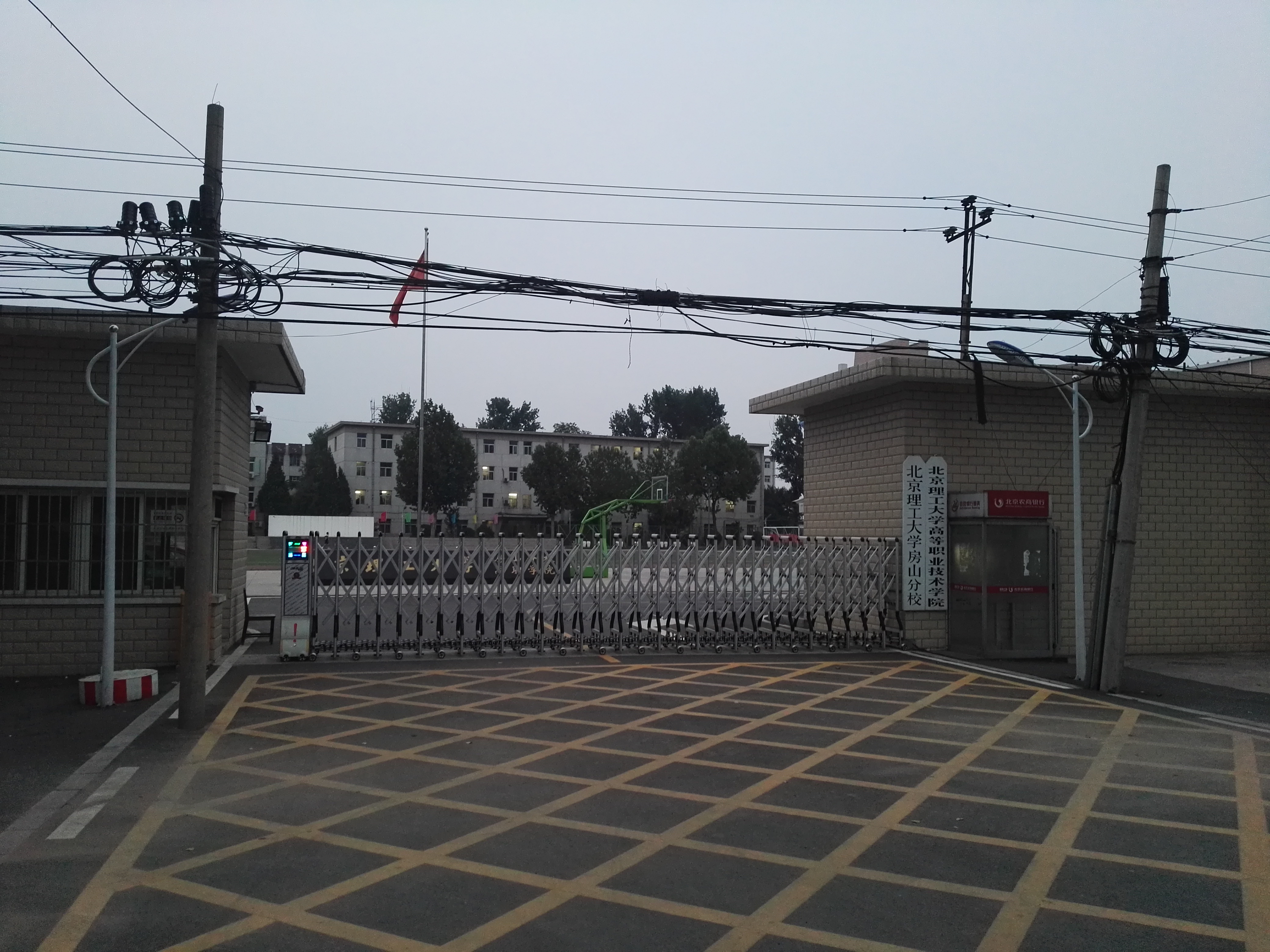 这个校区不算太大,门口就是一个操场,操场右边是综合楼,楼上还有小卖部大大的招牌。当我走进到闸门那里想拍照的时候,闸门被拉上了。好吧我知道学校的一卡通在这里不能用,不去蹭水了。