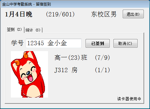 以前看到女生宿舍签到排成长龙真心很不爽,男生的队伍在某些时候其实也不短。所以签到也可以改成电子的嘛。