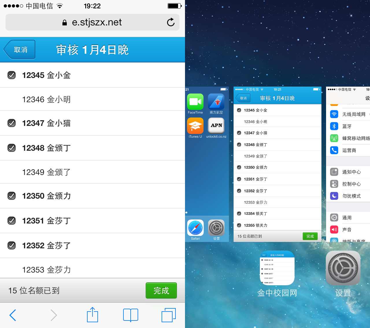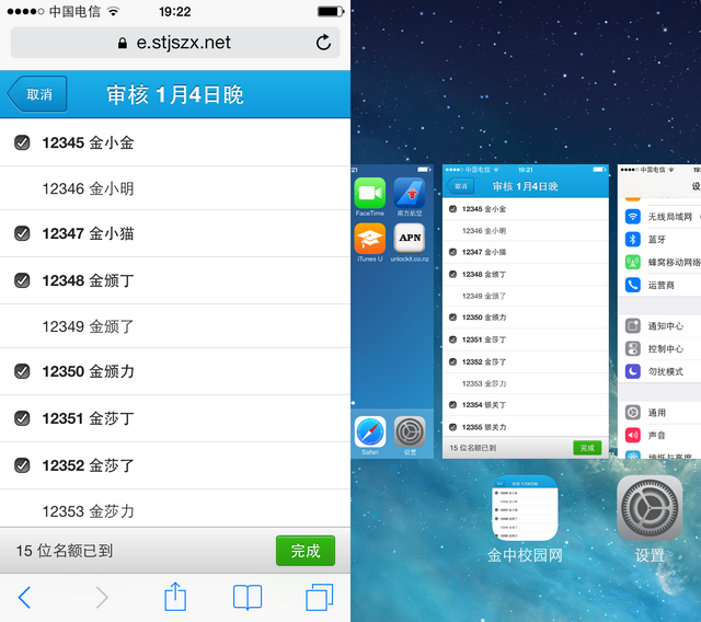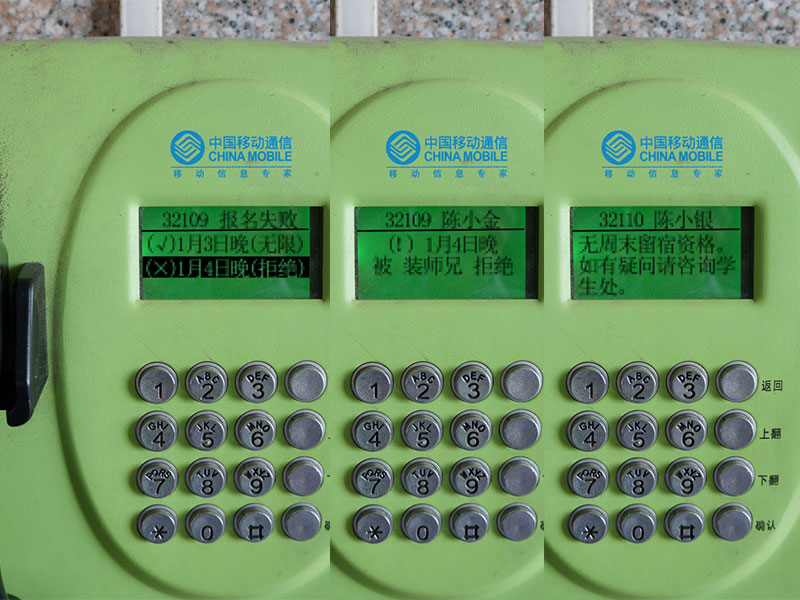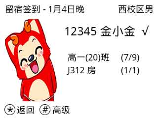 又到了报留宿的时间。高一的小金在星期五午休找了高一楼的一台自助终端(现成的校讯通)。