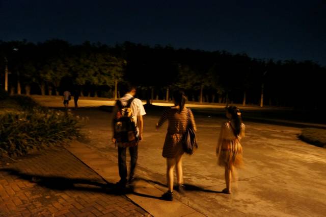 当然摆摊的街也只有固定那几条,我们感受到的大学城的大部分路段在晚上的气氛还是相当不错的。静静的,开着路灯,绿化很好,马路上空空的,步行街上人也不是很多。