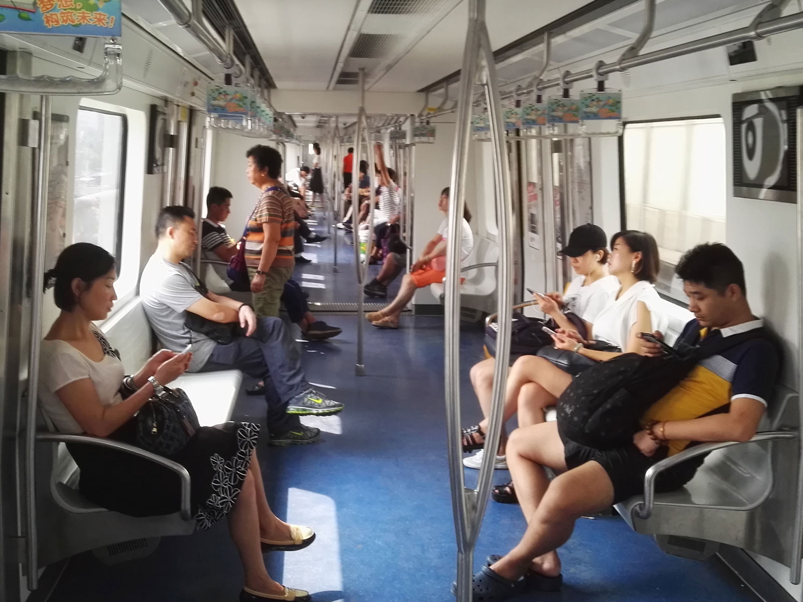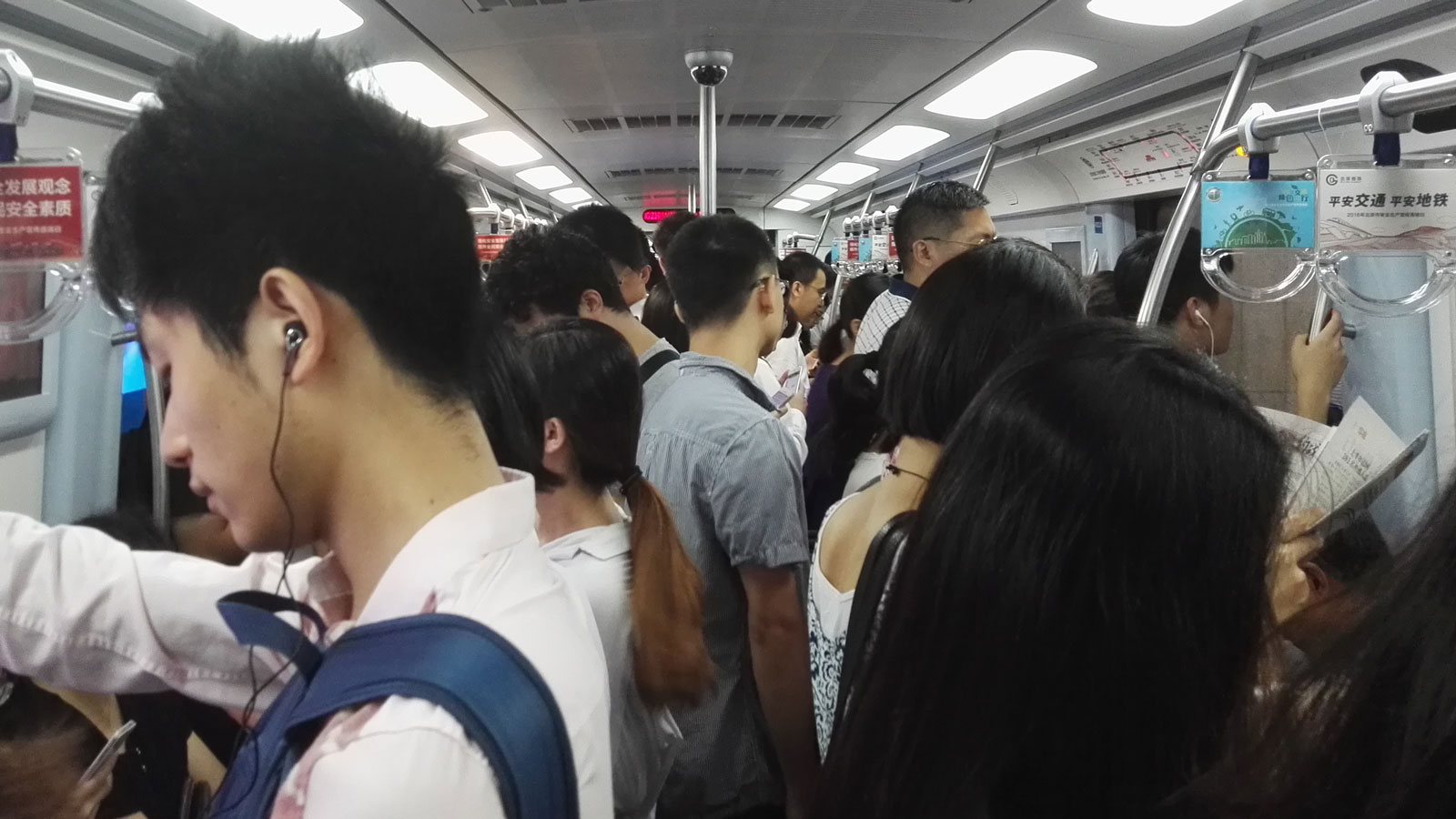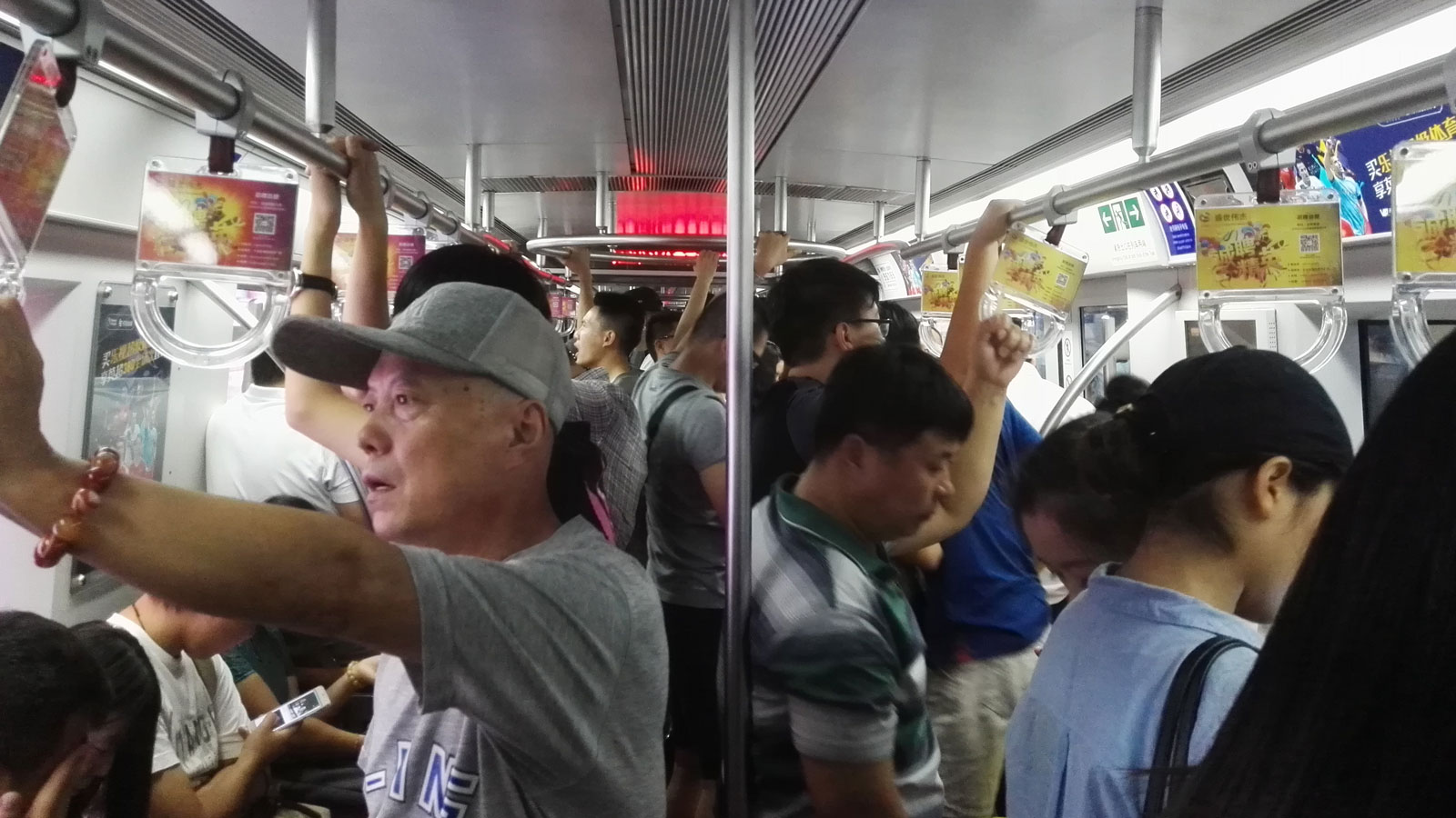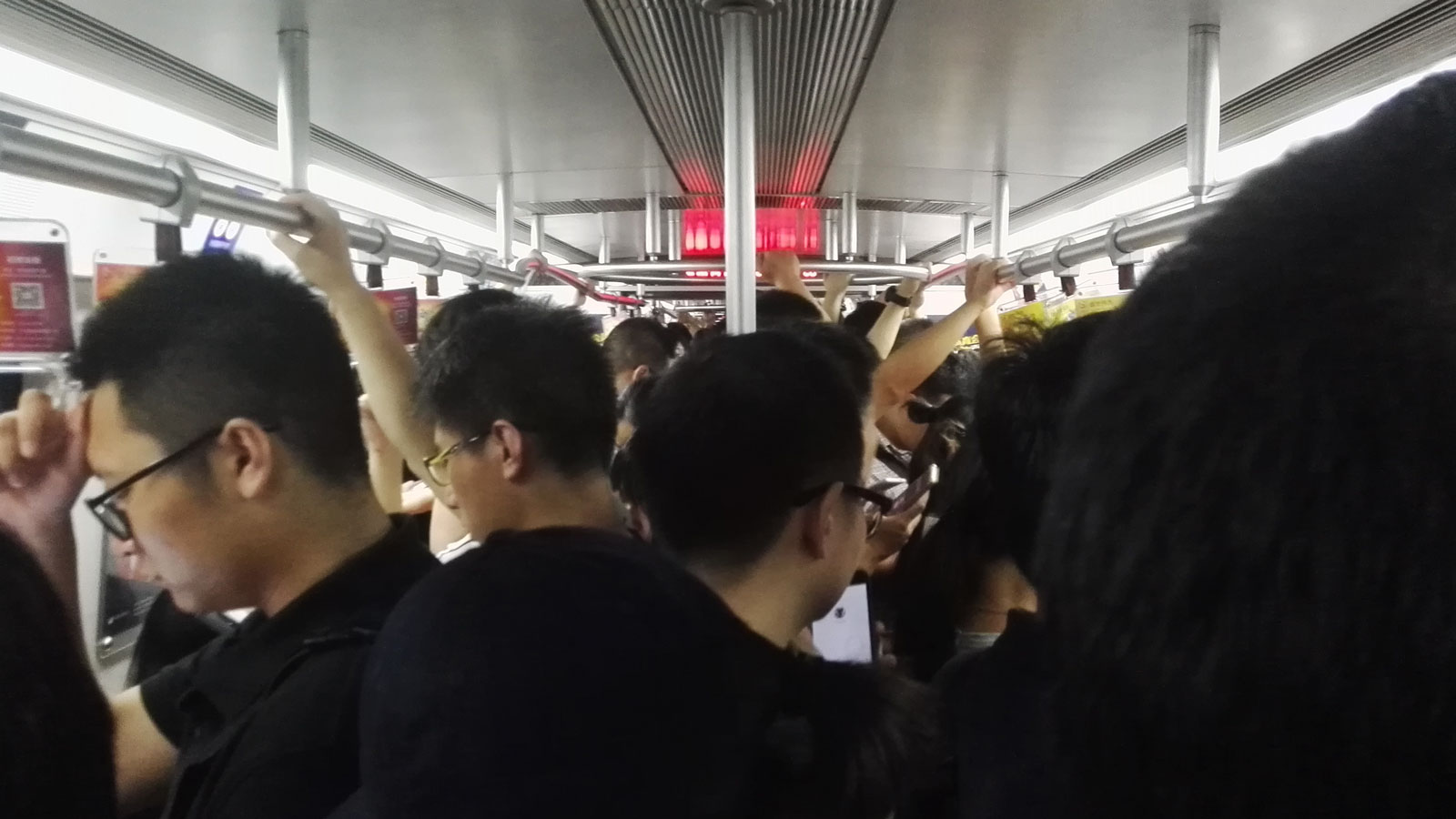 这张是 8:47,马上要到国贸站的时候车上的状况。