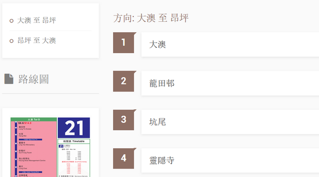 而在香港,几乎所有专营巴士公司都有网站。就举规模最小的新大屿山巴士来说,它只有 23 条线路,垄断了大屿山地区的巴士。