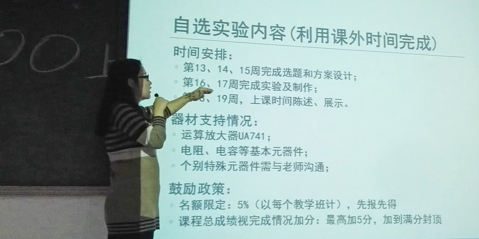 - 讲细点,讲多点。电路焊接很多人都体验过,但这门实验课讲的应该是最详细的。第一次做的时候,老师的分步讲解讲得很慢,会等教室里的每一个人完成再进下一步,而且老师还会利用实物投影仪和巡视的方式,保证教室里每一个角落的同学都能听清楚要求。可以说这门课是我上过的实验里“用户体验”最好的课程。